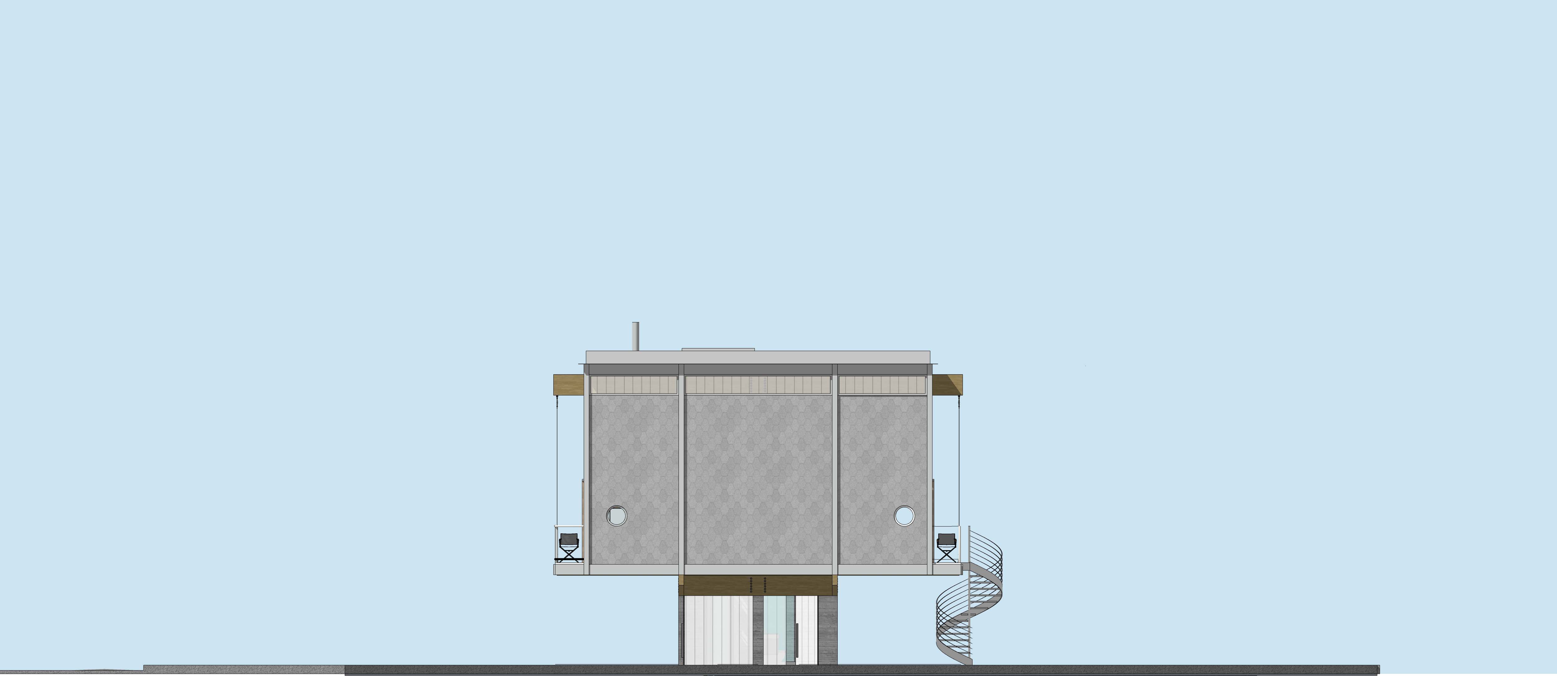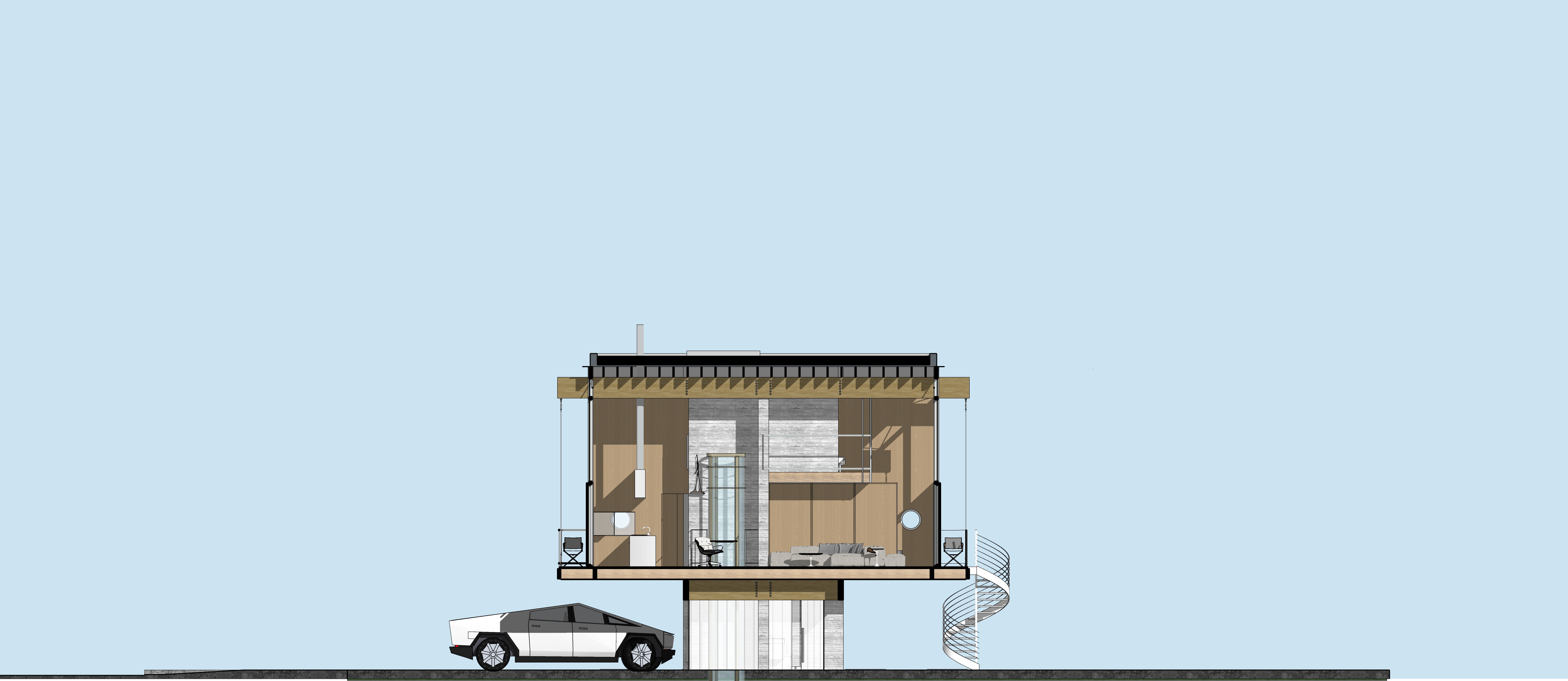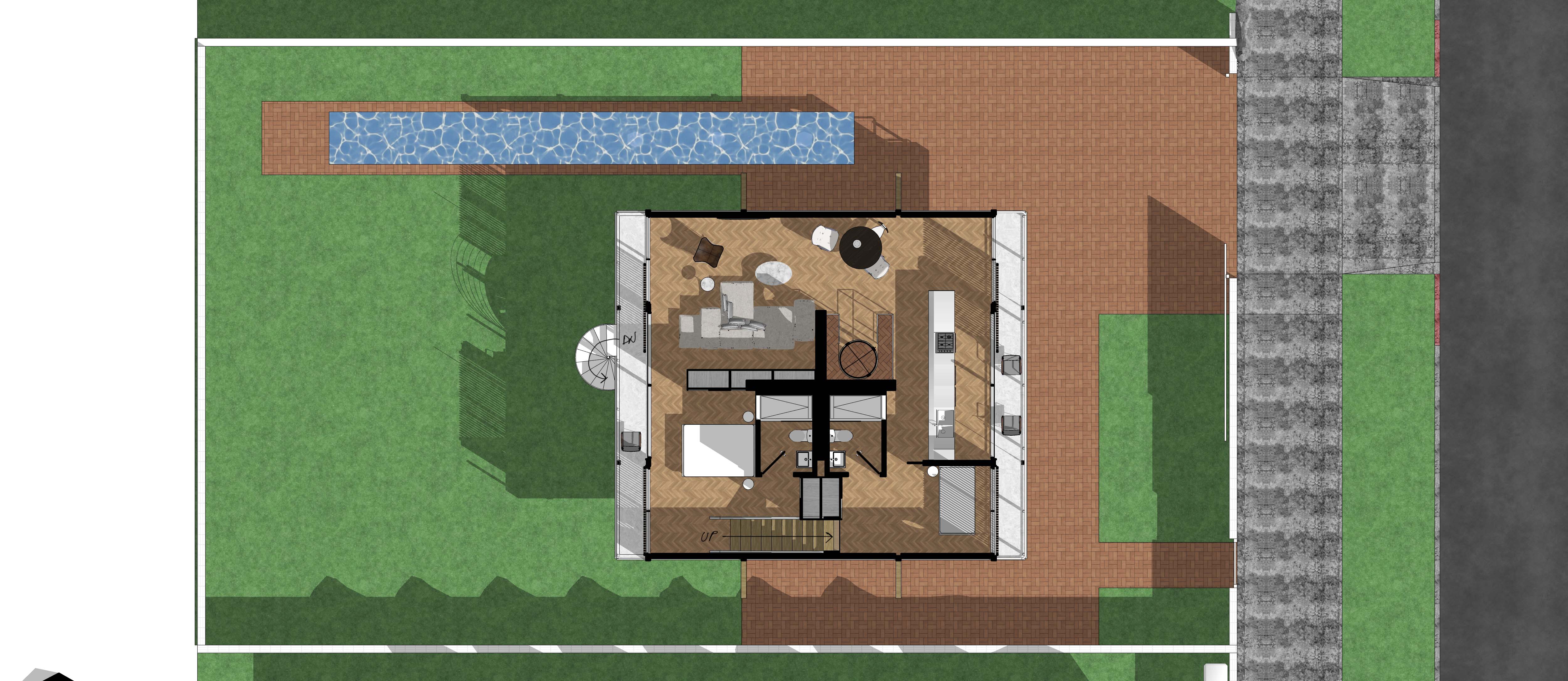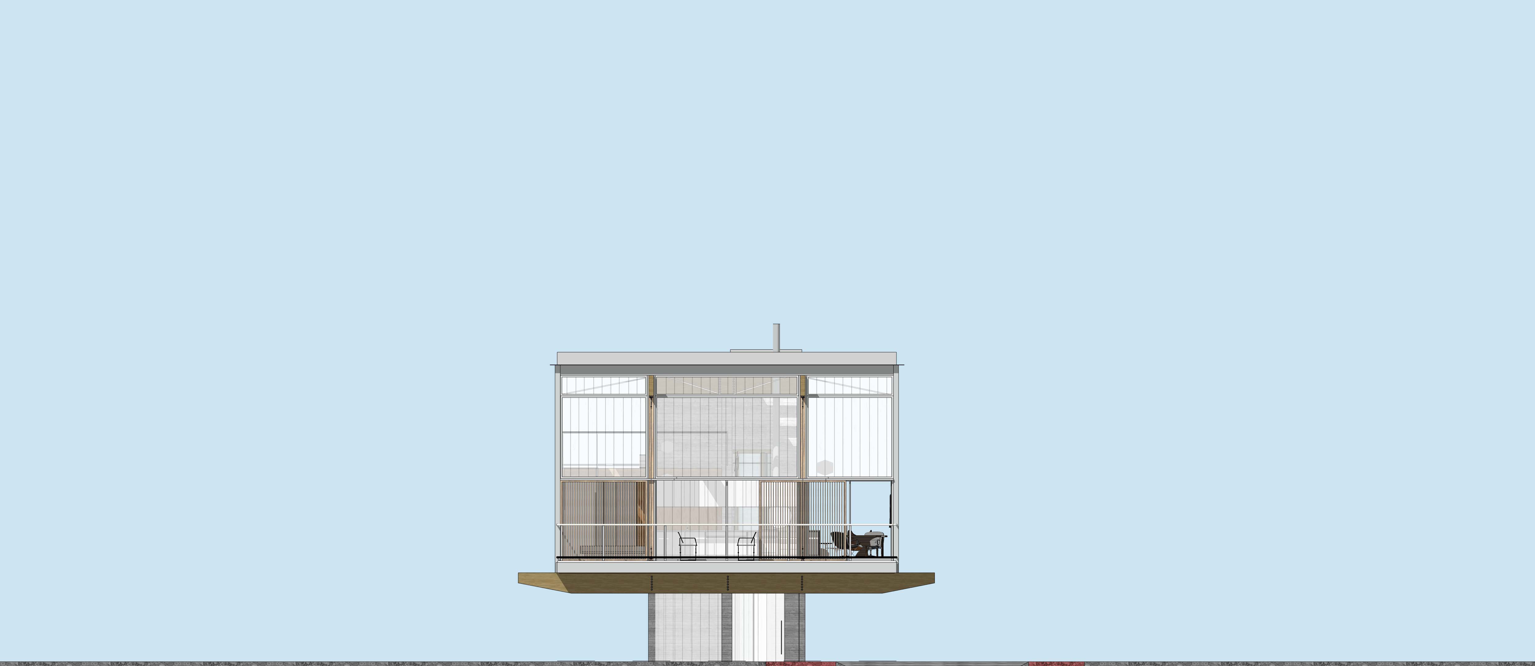 The scheme minimize the impact of the building  on the ground,  keeping the landscape open and free.